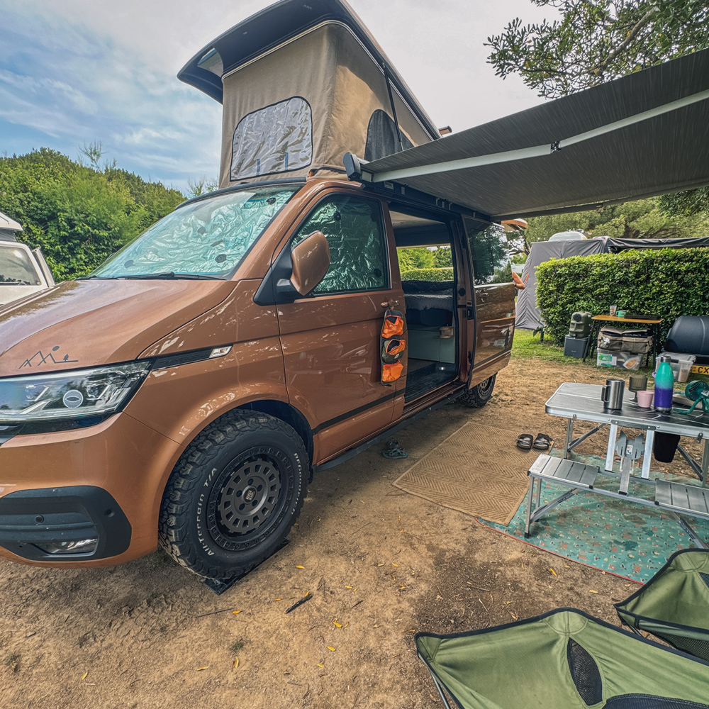The kids tired quickly, so we didn’t linger long, but we stocked up on veggie bits from a small supermarket and headed back. The rest of the day was spent on the beach and in the van, finished off with a cosy little campfire before bed.