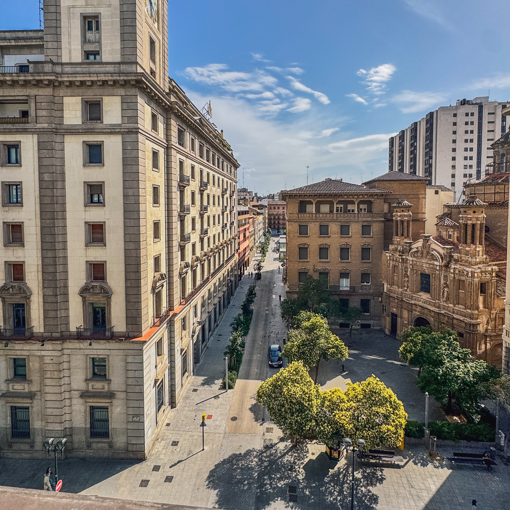 Zaragoza became our halfway stop, primarily chosen because it was marked on the map and had hotels. With the temperature hitting 39°C, camping wasn’t an option. Parking the van was a challenge, but after removing the surfboards, we managed to squeeze into an underground car park.