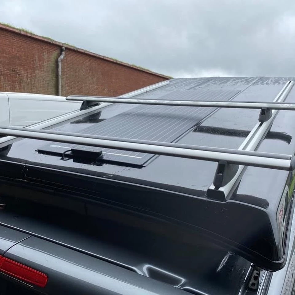 As you can see this 130W Semi-flexible Solar Panel is so low profile you can even have a Roof Rack installed with it.