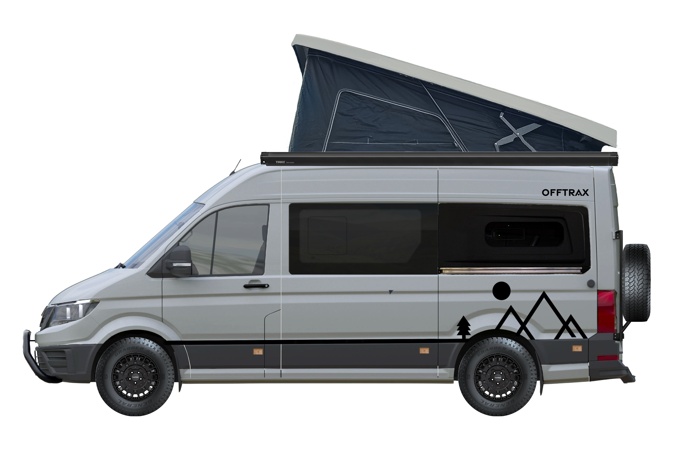 Built on the MAN TGE, the Offtrax is our premium conversion range. With a larger footprint, more powerful drivetrain, and 4-season capability, it's built for those who want to explore without limits — from Scottish highlands to Alpine passes.